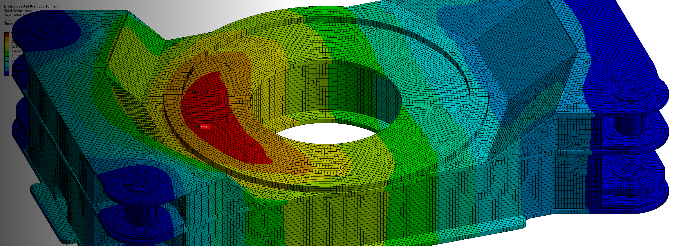 Das numerische Verfahren der Finite Elemente Methode (FEM) ermöglicht eine frühzeitige rechnerische Untersuchung von Konstruktionsvarianten noch bevor die Bauteile in die Herstellung über gehen. Eventuelle Schwachstellen werden erkannt und können mit geometrischen Änderungen sehr effektiv und kostengünstig behoben werden. Dies spart Zeit und Geld. Bei der Untersuchung von Schwachstellen mit nachfolgender Lösungssuche für mögliche Verbesserungen erweist sich die FEM ebenfalls als unverzichtbares Instrument. In der Siumulation setzen wir die Software ANSYS ein und verfügen mittlerweile über eine 23-jährige Erfahrung.